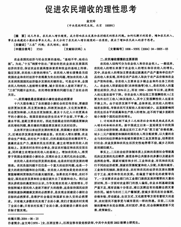 促进农民增收的理性思考