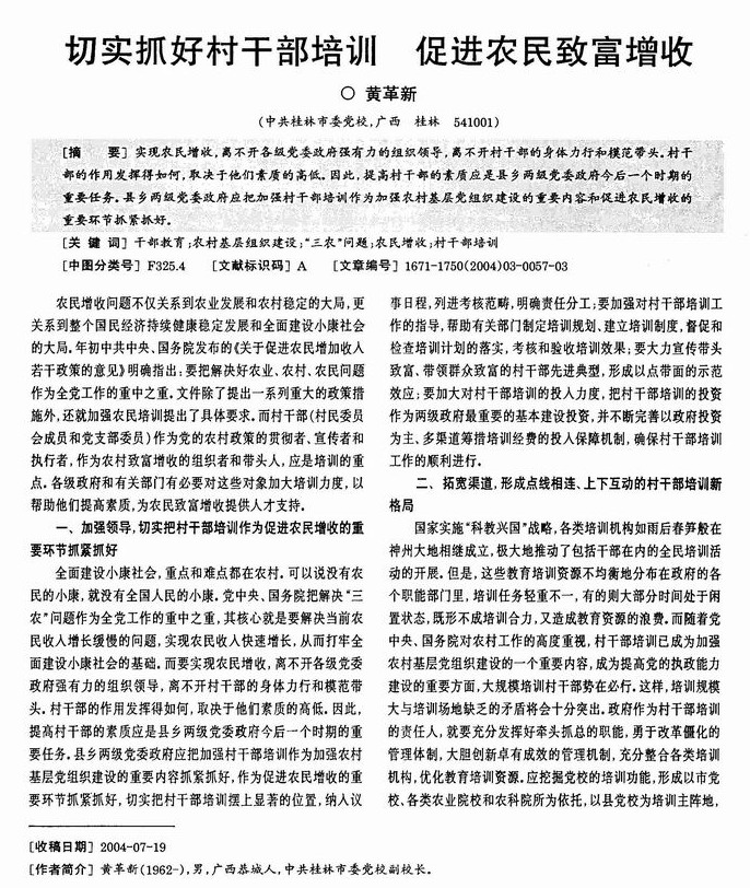 切实抓好村干部培训 促进农民致富增收