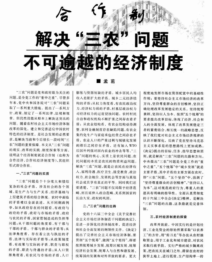 合作制——解决“三农”问题不可逾越的经济制度