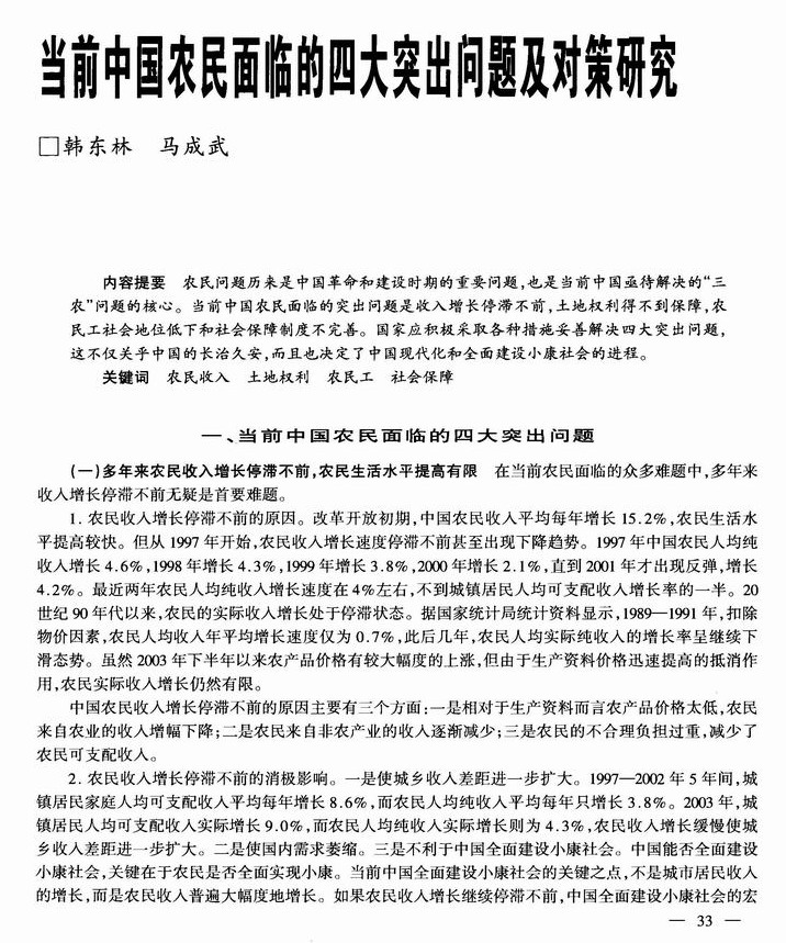 当前中国农民面临的四大突出问题及对策研究