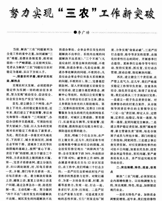 努力实现“三农”工作新突破