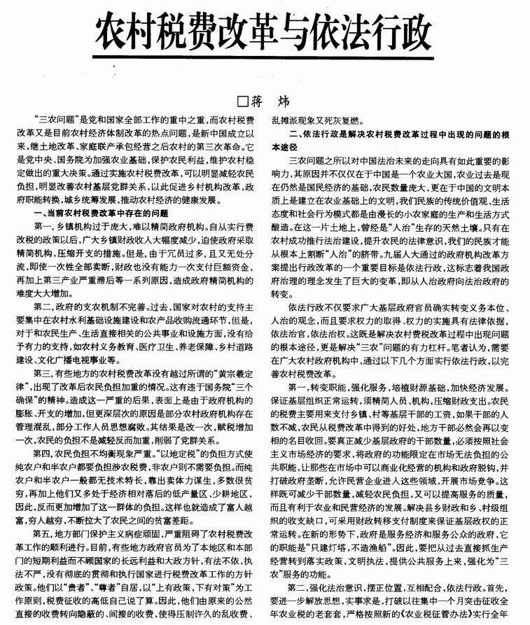 农村税费改革与依法行政