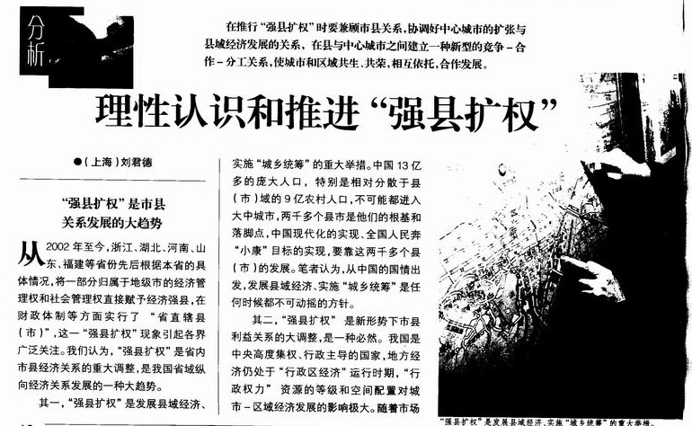 理性认识和推进“强县扩权”