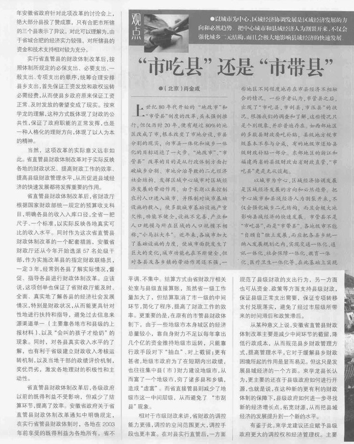 “市吃县”还是“市带县”