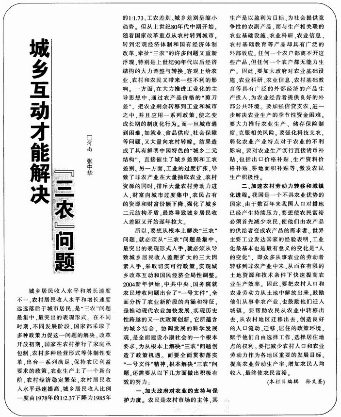 城乡互动才能解决“三农”问题