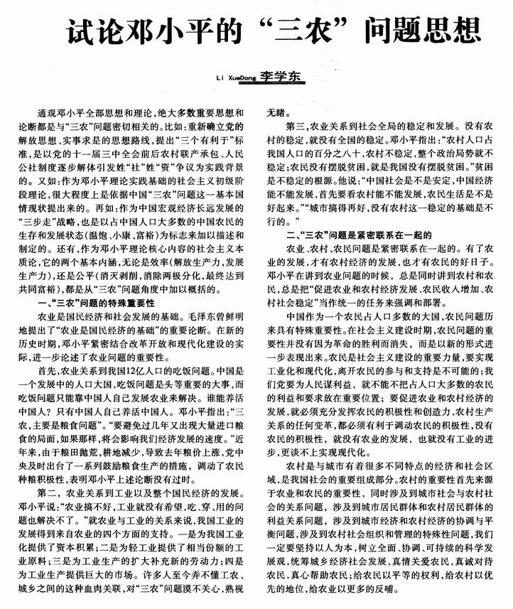 试论邓小平的“三农”问题思想