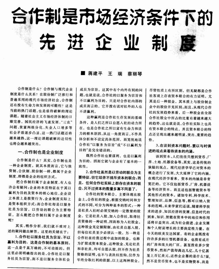 合作制是市场经济条件下的先进企业制度