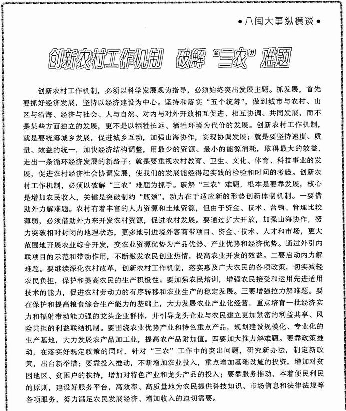 创新农村工作机制 破解“三农”难题