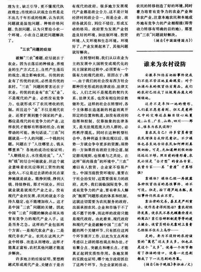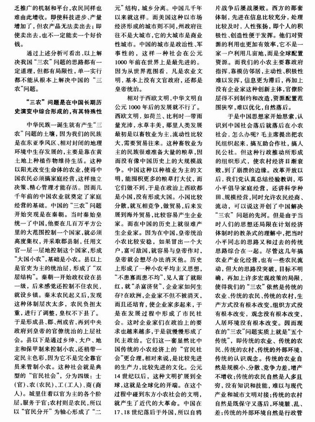 “三农”问题刨根儿