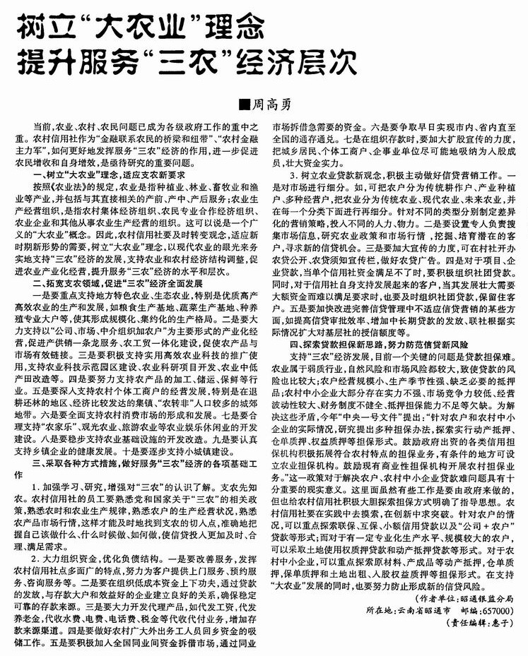 树立“大农业”理念提升服务“三农”经济层次