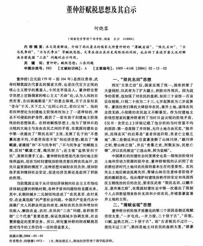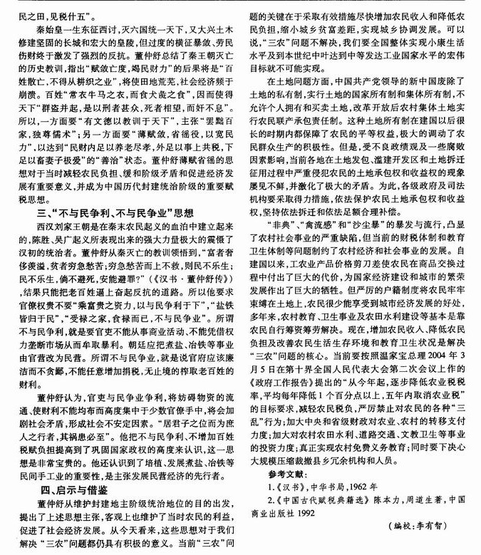 董仲舒赋税思想及其启示