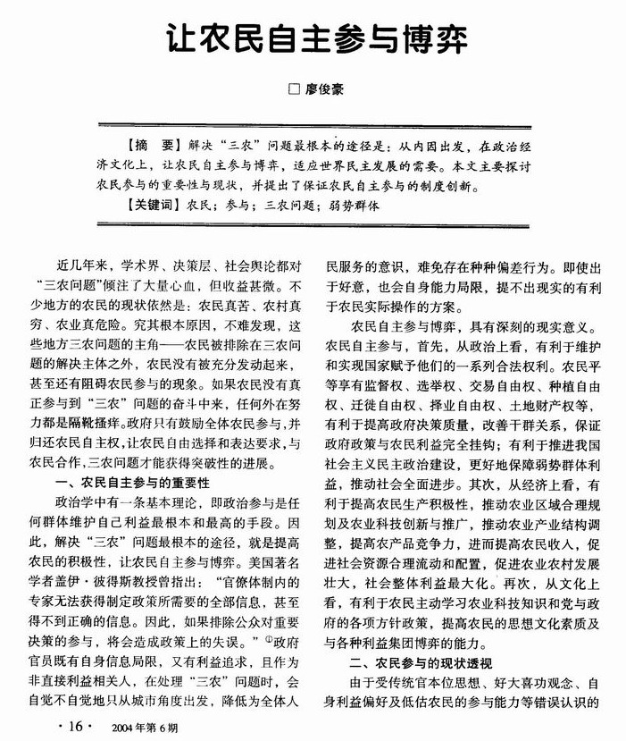 让农民自主参与博弈