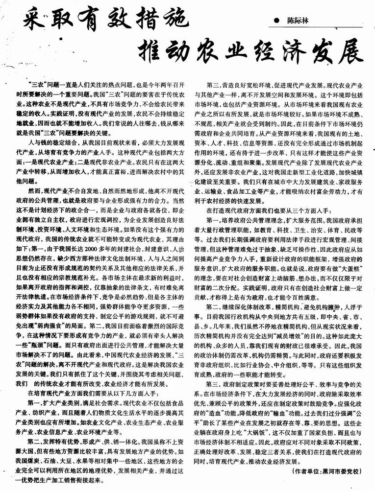 采取有效措施推动农业经济发展