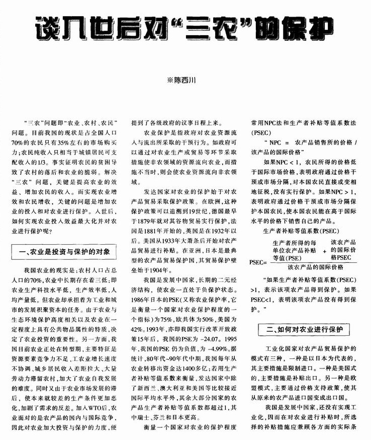 谈入世后对“三农”的保护