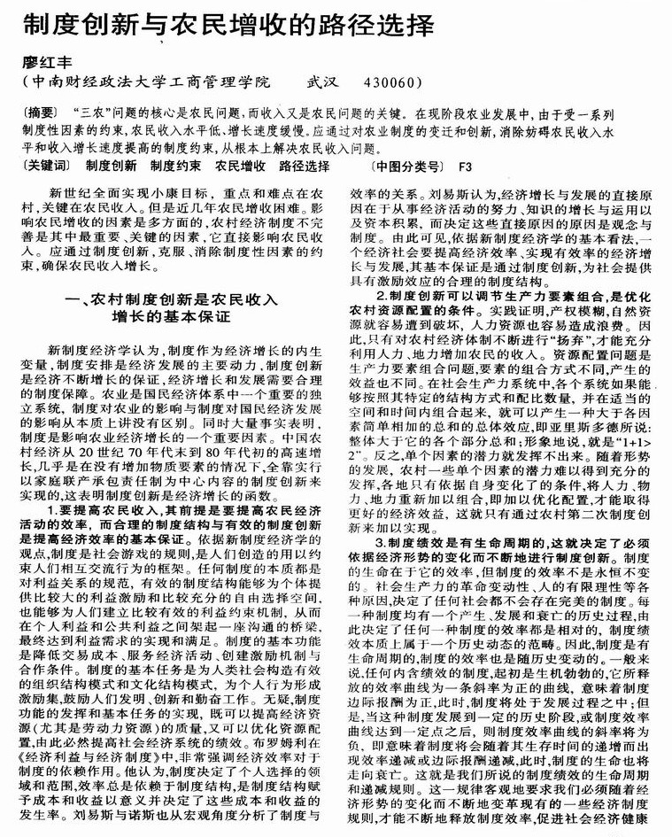 制度创新与农民增收的路径选择