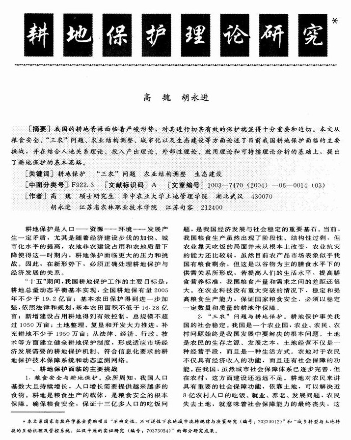 耕地保护理论研究