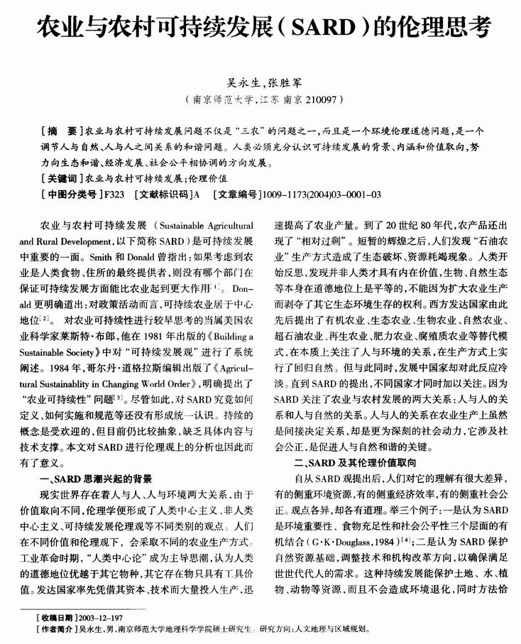 农业与农村可持续发展(SARD)的伦理思考