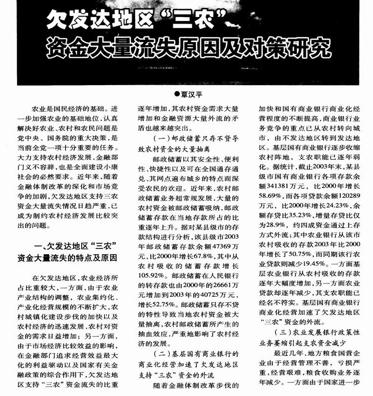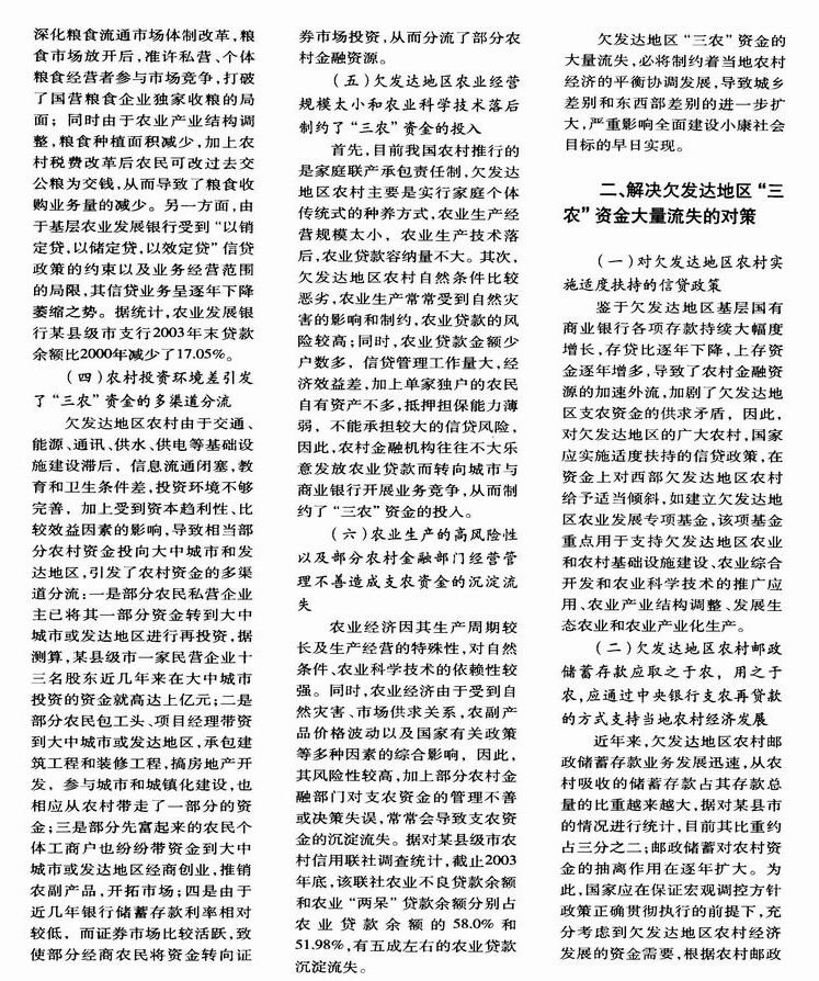 欠发达地区“三农”资金大量流失原因及对策研究