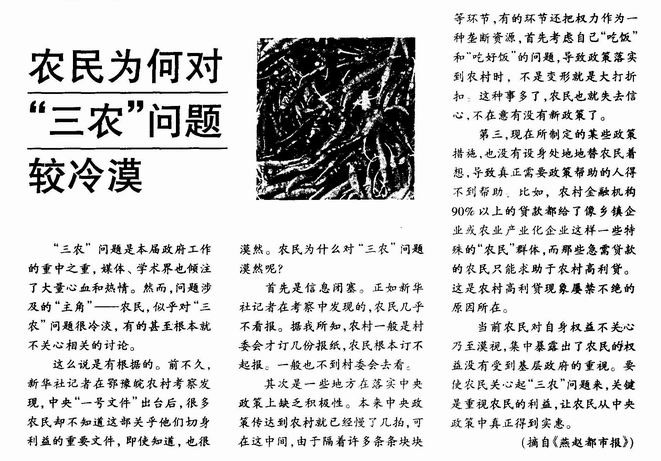 农民为何对“三农”问题较冷漠