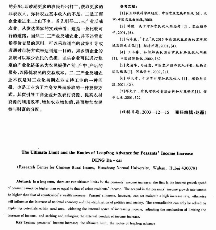 农民增收的极限约束与跨跃路径
