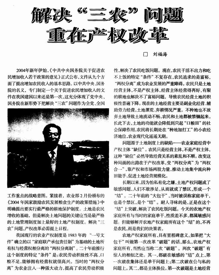 解决“三农”问题重在产权改革
