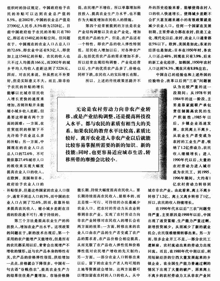 解决三农问题的关键在于发展农村教育、转移农村人口