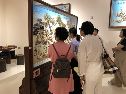 读者观看贝雕作品