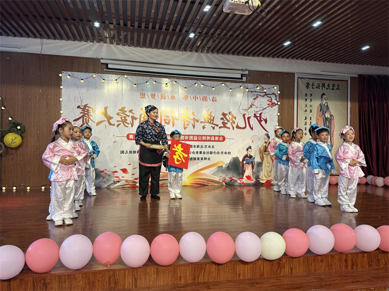 决赛现场氛围热烈非凡,小选手们个个精神饱满、声情并茂。他们巧妙运用表演诵、诗配乐、诗组合等多样形式,将诗文内涵展现得淋漓尽致。有的小选手激昂高亢,朗诵时气势磅礴,仿佛千军万马奔腾而来;有的则深情款款,用声音勾勒出细腻情感,恰似潺潺溪流诉说衷肠;还有的抑扬顿挫,朗诵节奏把握精准,犹如跌宕起伏的乐章扣人心弦。孩子们以真挚的情感,将经典诗词重新演绎,为在场师生奉献了一场精彩纷呈、活力四溢的诗文朗诵盛宴。