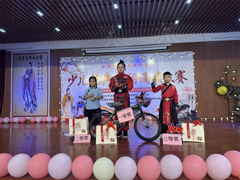 为激发乡村少年儿童对国学经典和诗词的学习兴趣与热情,加深对中华优秀传统文化的认同与感悟,6月21日,由北海市旅游文体局指导,由北海市图书馆、合浦县博闻公益图书馆主办,白沙镇社会事务办公室、白沙镇中心小学等多家单位联合协办的第二届“少儿经典诗词诵读大赛”在博闻教育综合体闻善堂会议厅举行。此次文化盛会吸引了100多名青少年儿童踊跃参与,呈现了一场穿越千年的诗词盛宴。