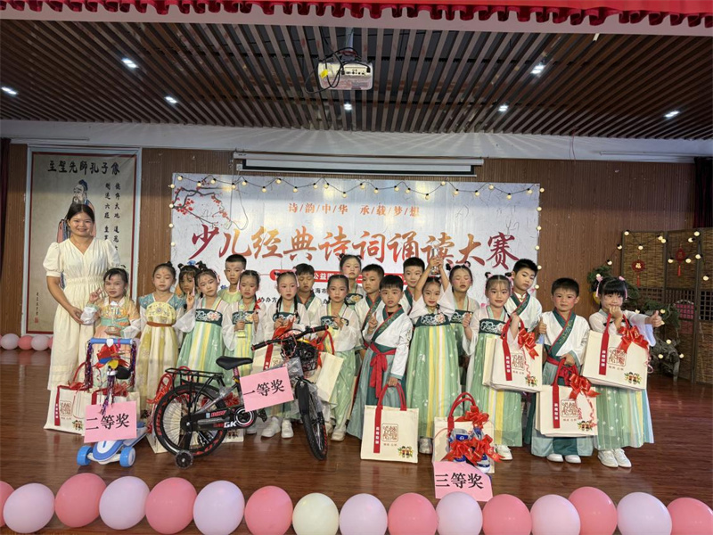 经过紧张激烈的角逐,各个奖项尘埃落定。钟紫涵同学凭借出色发挥斩获个人一等奖;叶子苓母女组合荣获个人二等奖;林能明同学获得个人三等奖。博闻幼儿园幼儿大班组脱颖而出夺得集体一等奖;博闻幼儿园大大三班荣获集体二等奖;博闻幼儿园大三班获得集体三等奖。20多组选手获优秀奖及“诗词小达人”荣誉证书。获奖选手们用实力证明了自己对经典诗词的热爱与钻研,收获了属于自己的荣耀时刻。