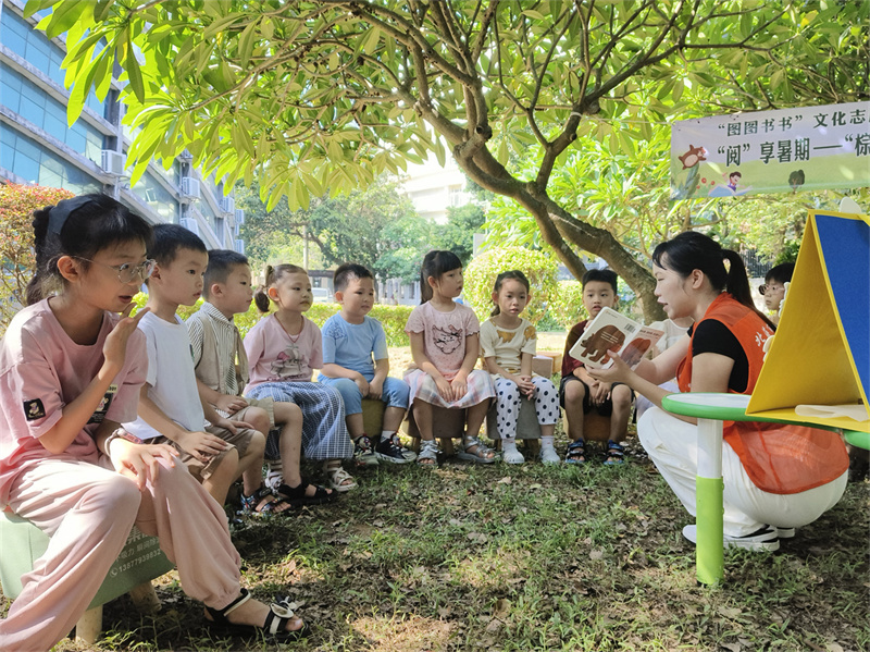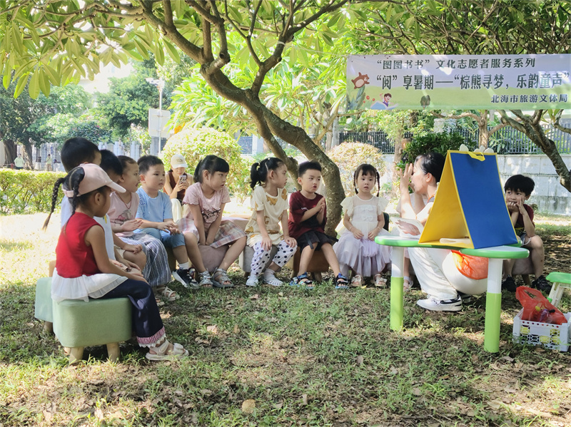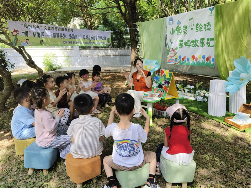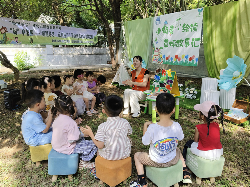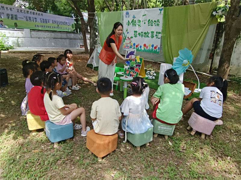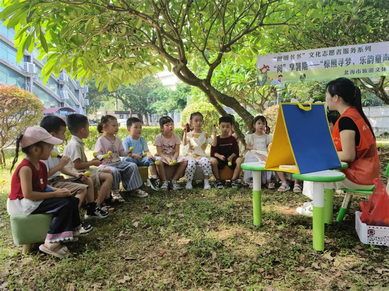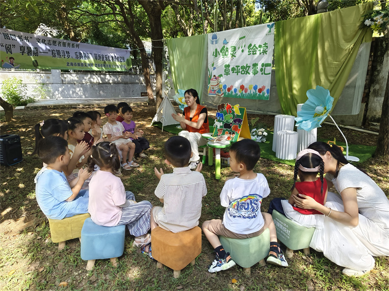 7月5日,北海市图书馆在图书馆西北角新开辟的“护苗绿书签”活动场地开展“悦读护苗系列活动——‘阅’享暑假·草坪音乐故事汇”,以丰富多元的形式,将音乐和书香文化深度融合,为小读者们带来了一场别开生面的文化盛宴。