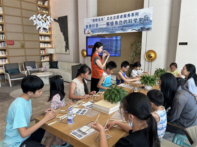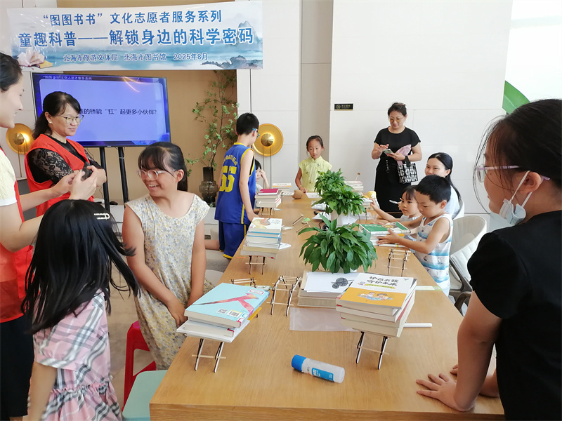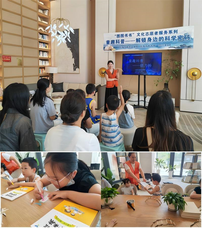8月12日,北海市图书馆在金地·山海领誉城市智慧书房开展“在书香里解锁倍力桥的秘密——悦读护苗童趣科普系列”主题活动。为读者们打造了一场独特的知识盛宴,同时积极践行“绿书签行动”,大力宣传科普政策,助力小读者们的成长。