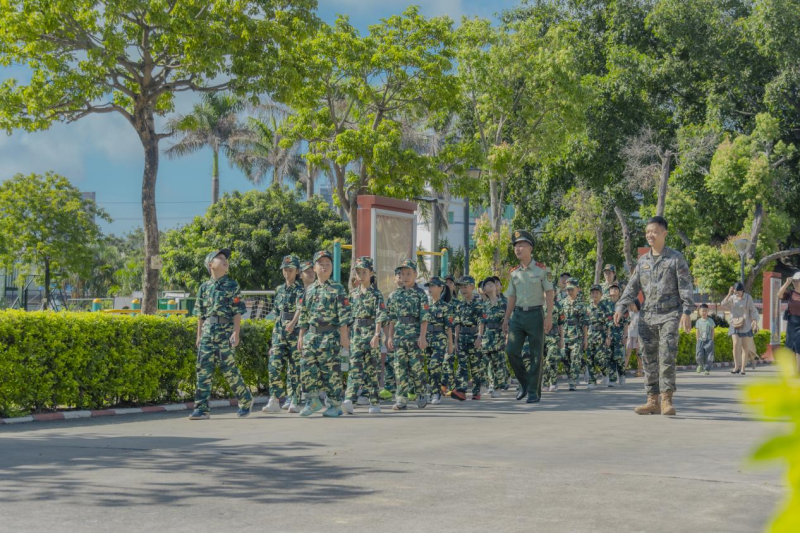 随后,进入“阅”享暑期系列活动——国防教育体验环节。少儿读者们怀着激动与好奇走进军营,首先观摩了刺杀操和军体拳表演。武警战士们动作整齐、刚劲有力,展现出了飒爽的英姿,赢得了少儿读者们的阵阵掌声。一位少儿读者激动地说:“我以后也要像叔叔们一样,成为一名勇敢的军人,保卫我们的祖国!”