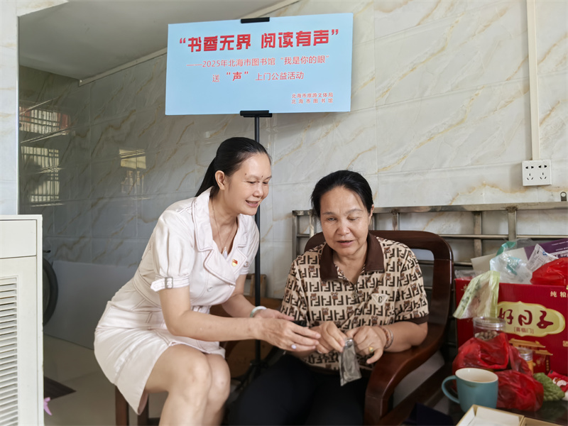 为切实践行《中共中央关于进一步全面深化改革、推进中国式现代化的决定》中提出的“优化文化服务和文化产品供给机制”“完善公共文化服务体系,建立优质文化资源直达基层机制”,营造扶残助残的良好文化氛围,近期,北海市图书馆精心筹备并持续推进“书香无界 阅读有声”——2025年“我是你的眼”送“声”上门公益活动,深入合浦县、海城区大街小巷,累计为12名视障读者送上听书机,让更多因身体原因难以走进图书馆的特殊群体感受到阅读的力量与温度。