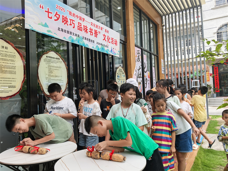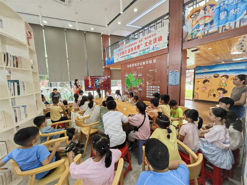 七夕佳节,浪漫与文化完美交织。8月28日,北海市图书馆在疍家小镇城市智慧书房开展了我们的节日·“七夕映巧 品味书香”文化体验活动,此次活动形式丰富多样,巧妙地把独特的疍家文化、浓郁的传统节日氛围与优质文化资源融为一体,为广大读者呈上了一场精彩纷呈、别开生面的文化盛宴,活动现场气氛热烈,赢得了参与者的一致称赞。