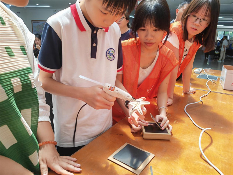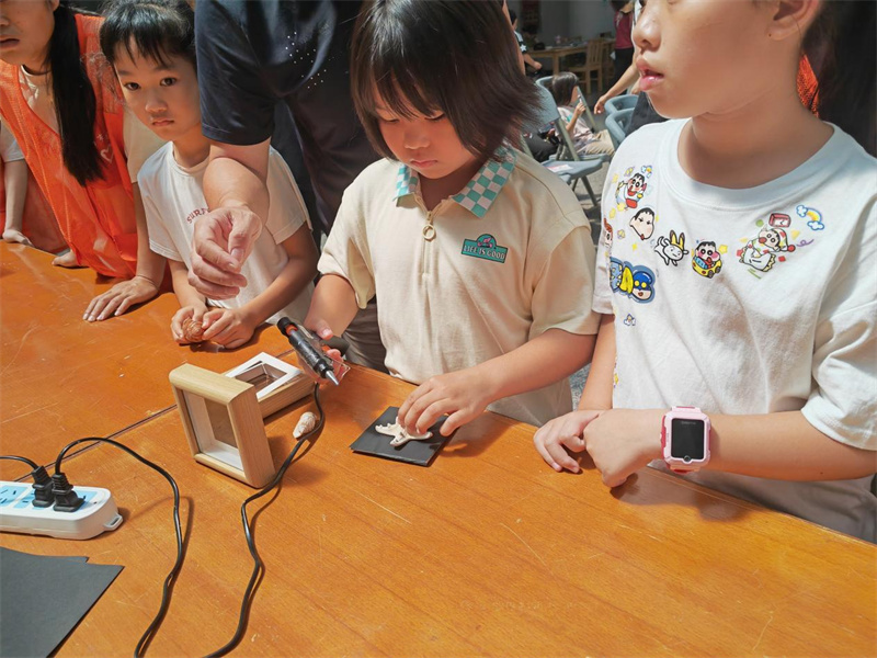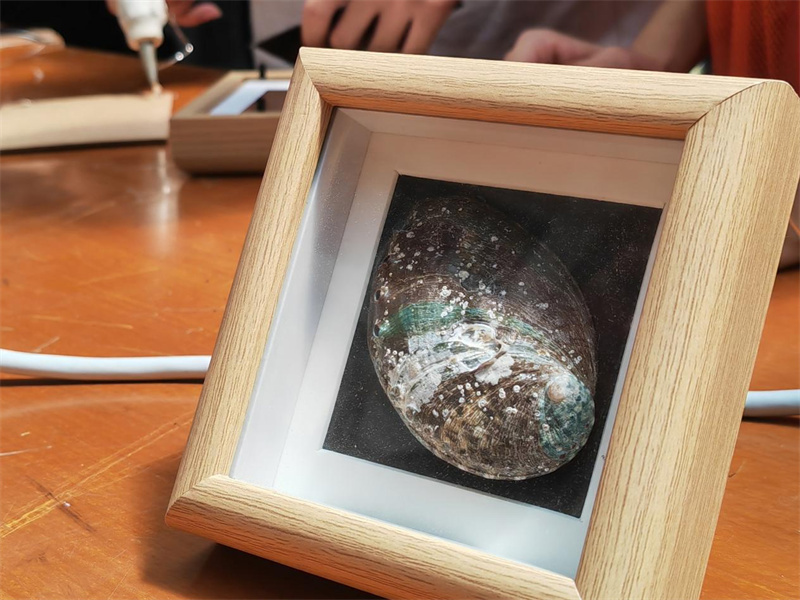 最受期待的手工创作环节,现场变身创意互动的欢乐海洋:参与者们分成两组,一组专注制作贝壳标本画,一组用心设计海洋主题徽章。当一件件独一无二的“海洋手作”完成时,孩子们高举手作奔向家长,脸上洋溢着自豪的笑容,成为展区最动人的风景。