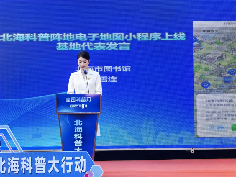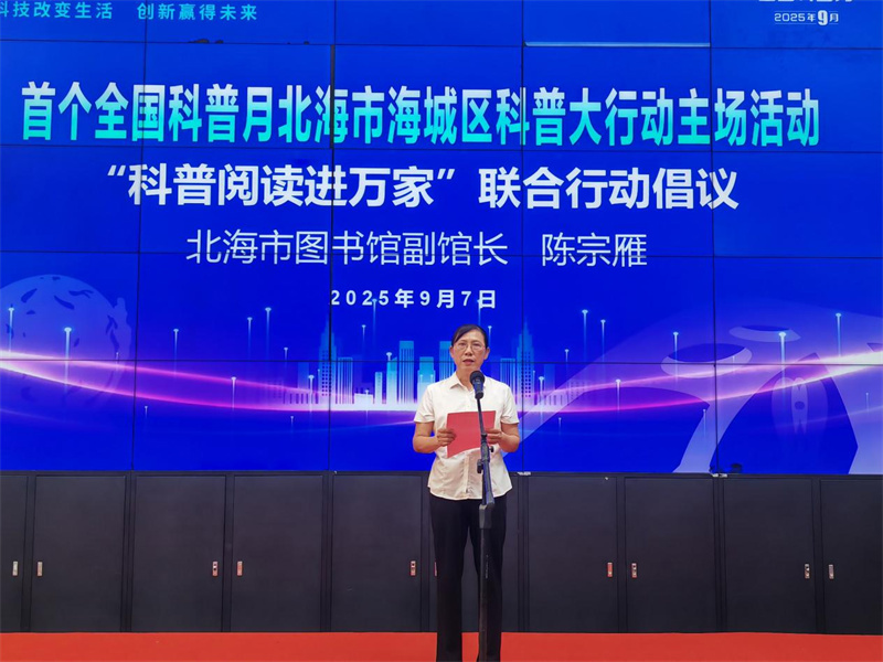 北海市图书馆党支部副书记、副馆长陈宗雁代表北海市图书馆围绕“科普阅读进万家联合行动”发出倡议,呼吁广大市民走进图书馆、亲近科普书籍,以阅读为桥梁探索科学奥秘;同时发布“年度科普书单”,书单涵盖自然科学、科技创新等多个领域,为不同年龄段读者提供精准的科普阅读指引,进一步丰富了市民的科普阅读资源,推动优质文化资源直达基层。
