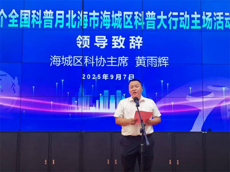 北海市海城区科协主席黄雨辉在启动仪式上致辞