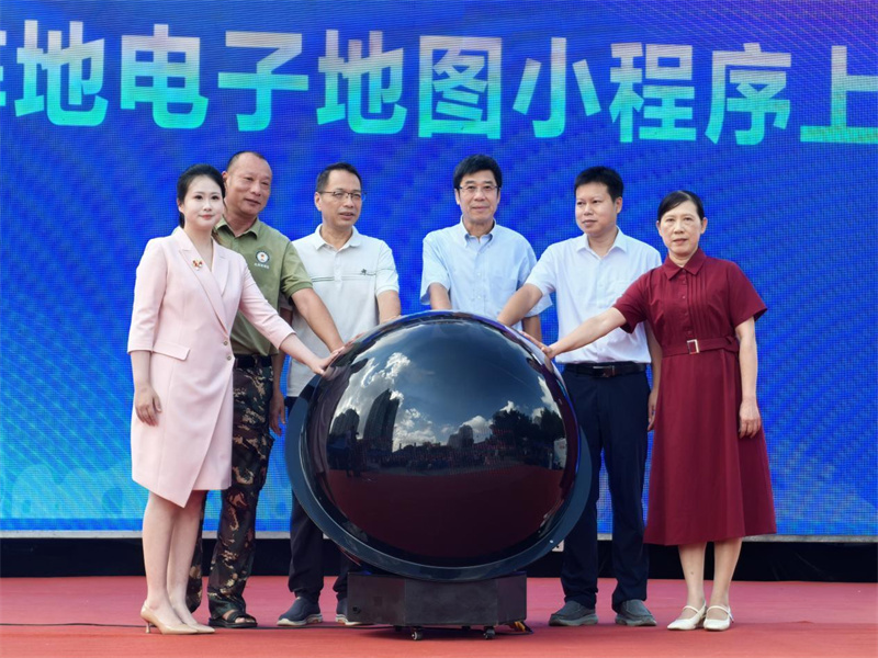 北海市政协副主席叶宗沛、北海市科协主席潘能辉、北海市图书馆党支部副书记、副馆长陈宗雁与其他三个科普基地代表一起启动北海科普阵地电子地图小程序。