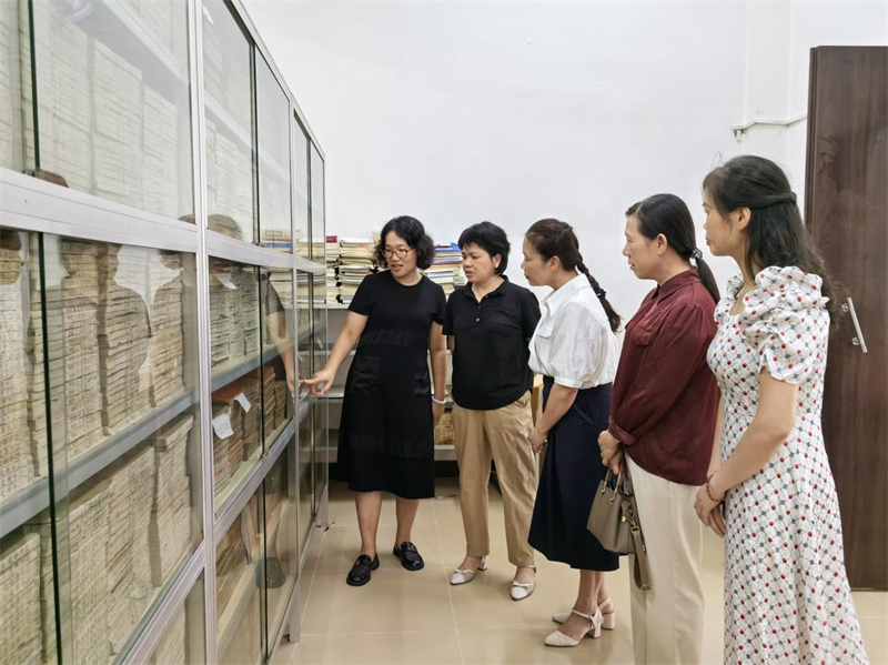 合浦廉州中学王冀红副书记、占远秀副校长陪同调研组参观该校图书馆古籍室