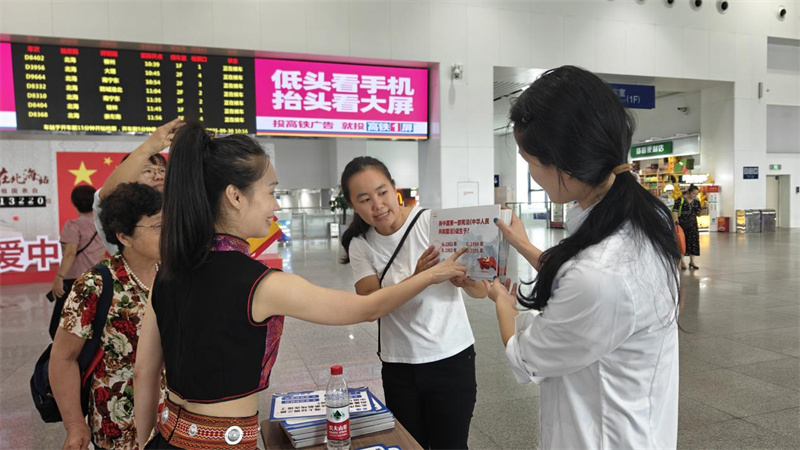 候车厅中,在“主题图书展”展区,图书馆馆员精选了涵盖爱国主题读物与八桂文化典籍两大类图书。旅客们或驻足翻阅,或轻声交流,在文字中触摸历史的温度,感受文化的魅力。此次图书展实现了优质文化内容的精准输送,让旅客在等待列车的碎片时间里,也能与书香为伴,汲取精神养分。