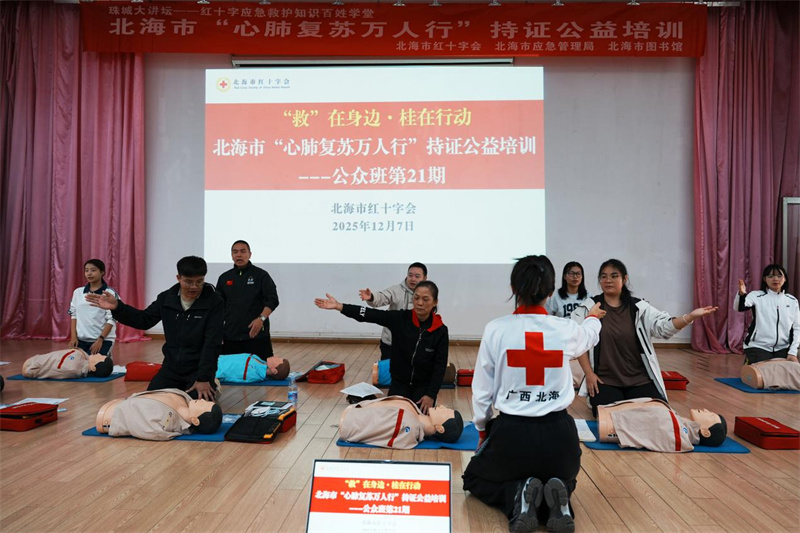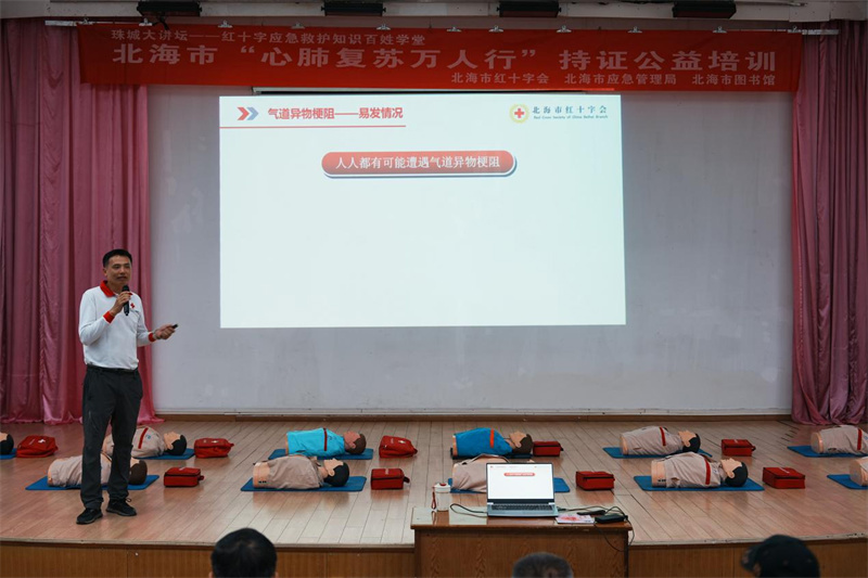 12月7日上午,北海市旅游文体局、北海市应急管理局、北海市红十字会、北海市图书馆联合主办的“珠城大讲坛——红十字应急救护知识百姓学堂”活动在市图书馆二楼报告厅成功举办。