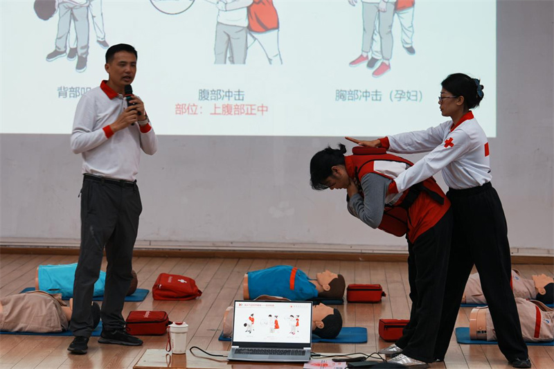 红十字会专业讲师以真实救援案例开篇,为实操训练奠定基础。学员们认真记录、主动提问,现场互动热烈。