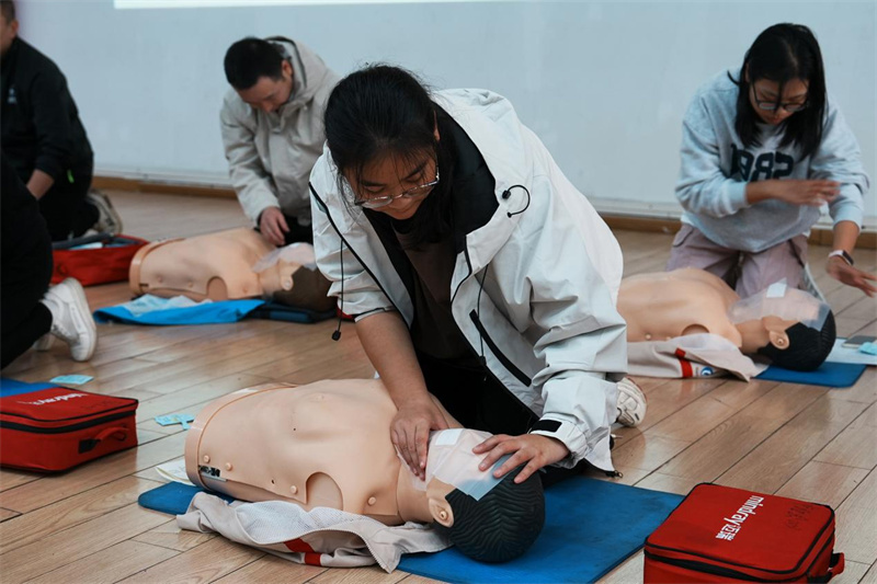 理论学习后,进入核心实操环节。学员分组在讲师示范指导下练习,讲师强调关键细节并逐一纠错,规范学员跪姿、按压位置等动作。学员们专注投入,将理论知识转化为实战能力。