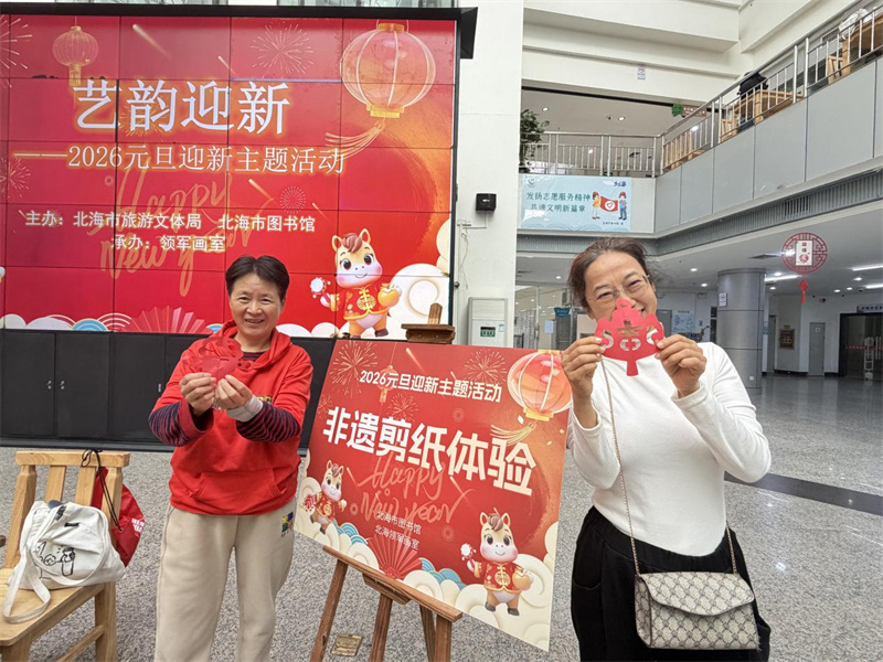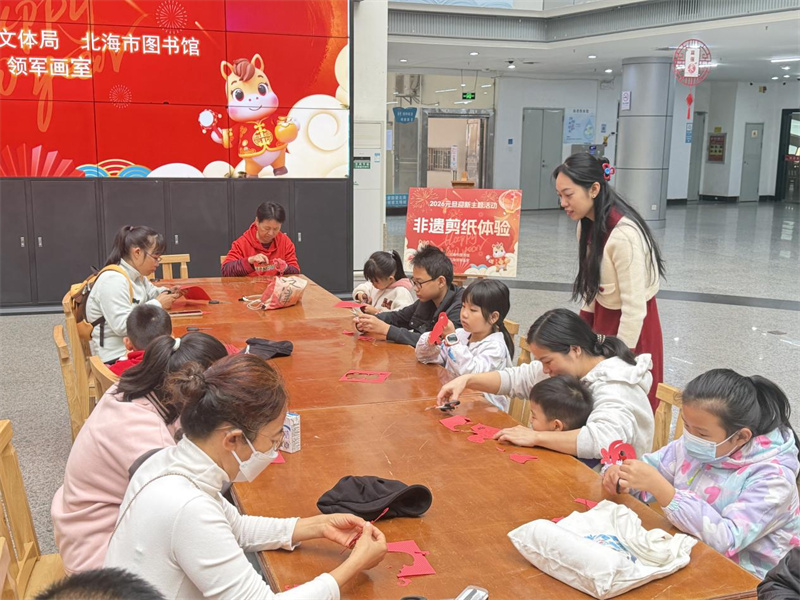 2026年1月1日,北海市图书馆一圆厅暖意融融、书香氤氲,由北海市旅游文体局,北海市图书馆主办、领军画室承办的“元旦文化体验活动”圆满落幕。本次活动以非遗体验与文创制作为核心,设置非遗剪纸、非遗中国结DIY、“书”新愿书签DIY三大特色环节,吸引了广大市民、艺术爱好者及亲子家庭约300人参与。