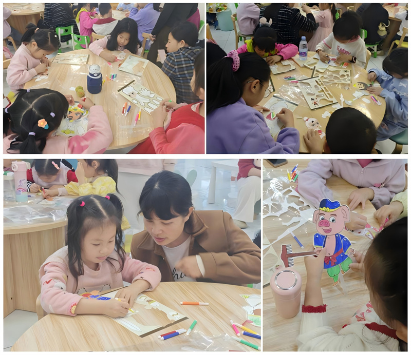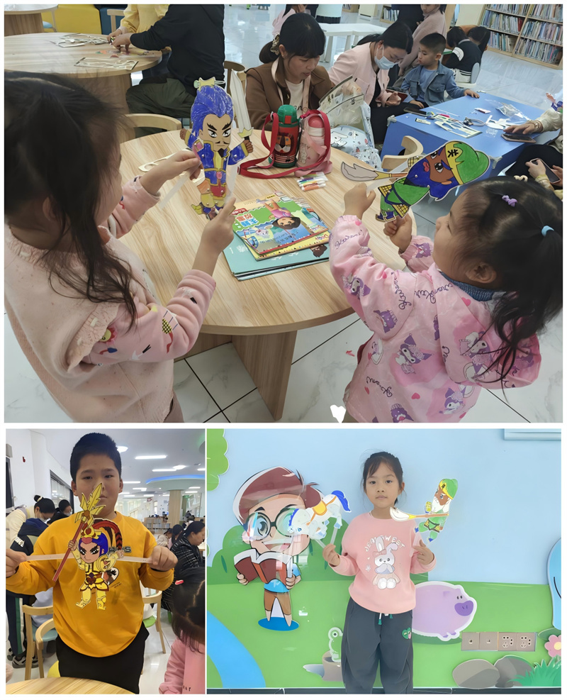 最受孩子们欢迎的环节莫过于“巧手绘皮影”手工坊。在“图图书书”文化志愿者指导下,孩子们和家长一起动手,挑选喜爱的角色图样、描绘色彩、组装关节,全神贯注地制作属于自己的皮影角色。不一会儿,一个个鲜活独特的皮影人物在孩子们手中诞生,有英姿飒爽的武将、灵动有趣的小动物,也有大家熟悉的《西游记》《三国演义》中的人物形象,现场充满了创作的热情与成就感。
