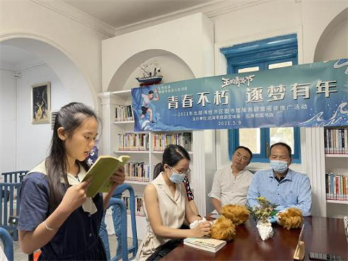 5月9日上午,北部湾经济区图书馆服务联盟(北海市图书馆)举办了珠城书友会公益讲座“青春不朽 逐梦有年”主题阅读推广系列活动,纪念“五四运动”,弘扬“五四精神”。本期公益讲座在北海关大楼旧址城市智慧书房举行。