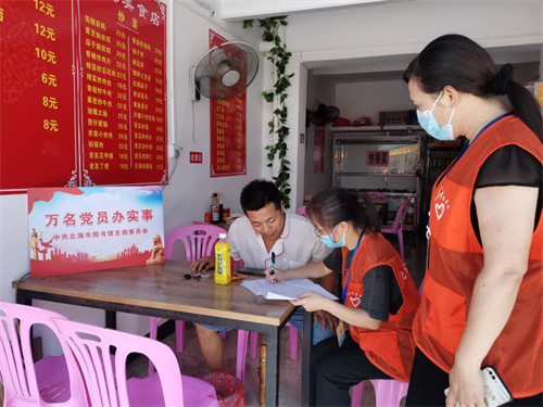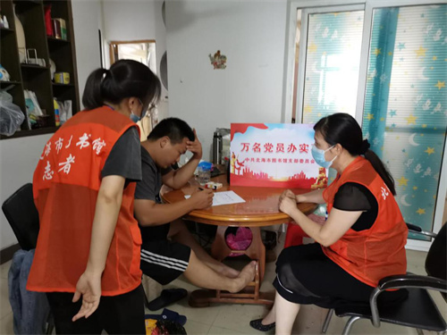5月28日下午,北海市图书馆党支部开展“万名党员办实事”活动,组织党员志愿者前往塘仔里社区计生中心宿舍、铁二处宿舍及附近商铺挨家挨户走访,广泛征集群众操心事、烦心事、揪心事,了解群众所需所盼,并做好详细的登记。当天,共走访了60户群众,收集群众“三事”8件。