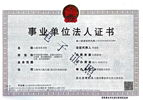 12月21日,全区事业单位法人电子证书首发仪式在北海市隆重举行,北海市图书馆在“桂事登”APP完成事业单位法人电子证书亮证工作,取得广西首张《事业单位法人证书》电子证照,成为广西第一家领取法人电子证书的事业单位。这标志着北海市事业单位法人电子证书改革试点工作进入实施阶段,同时也标志着广西事业单位登记管理正式开启数字化时代。