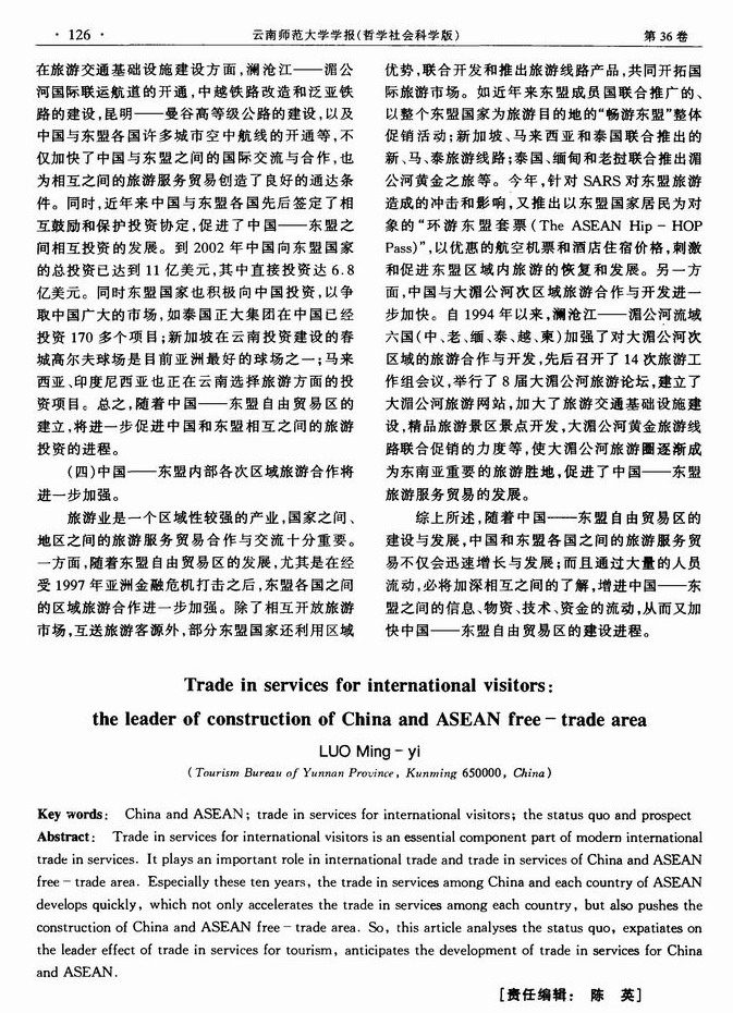 旅游服务贸易:中国——东盟自由贸易区建设的先导